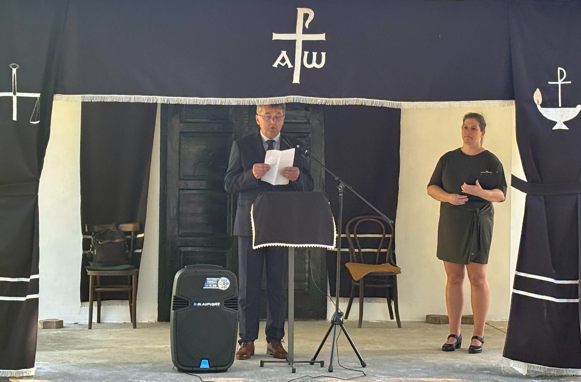 A nagyvelegi evangélikus lelkész Szemerei Benjámin beszédében kiemelte a békére törekvést, és a párhuzamot a múlt és a jelen közt.