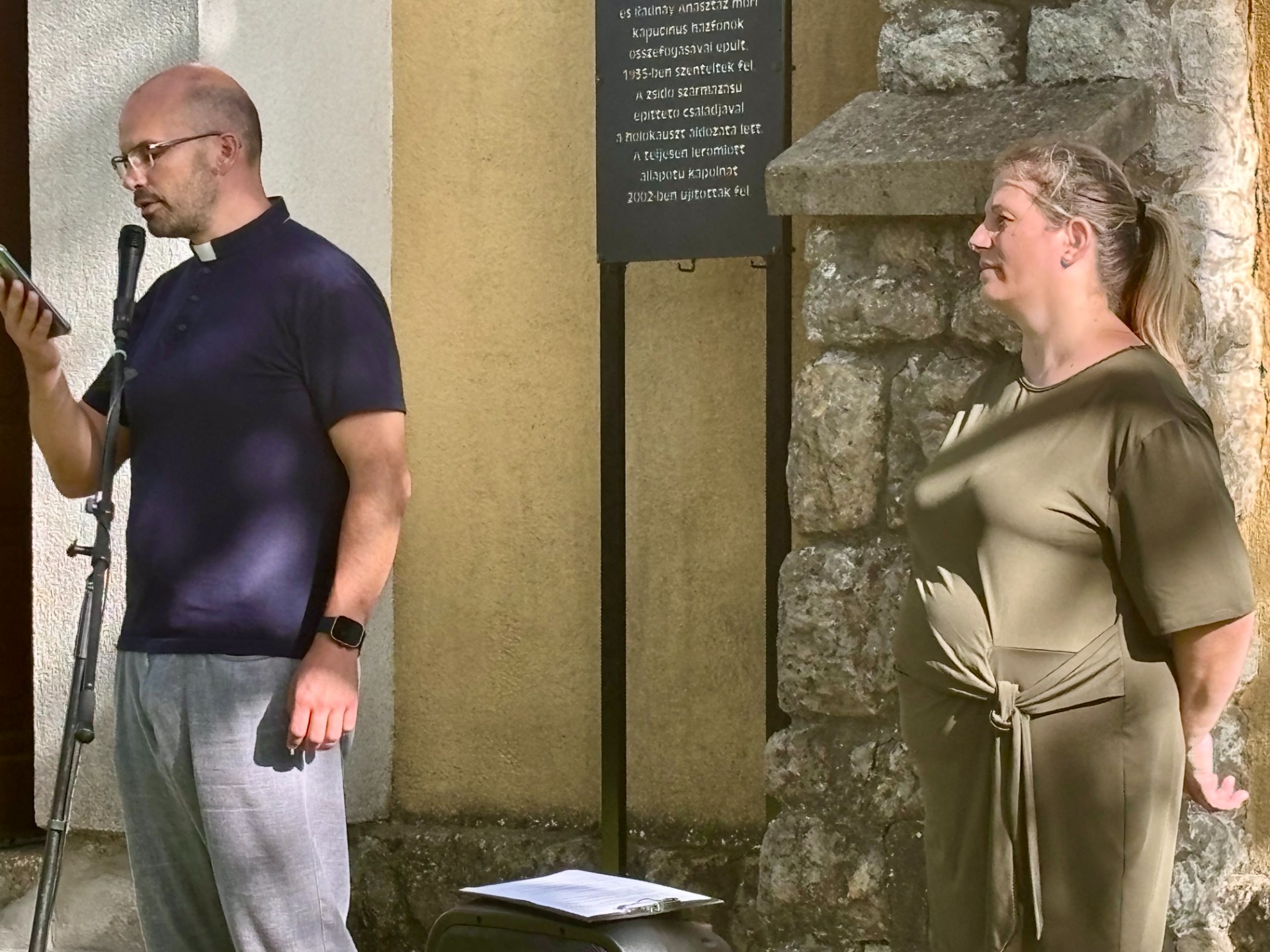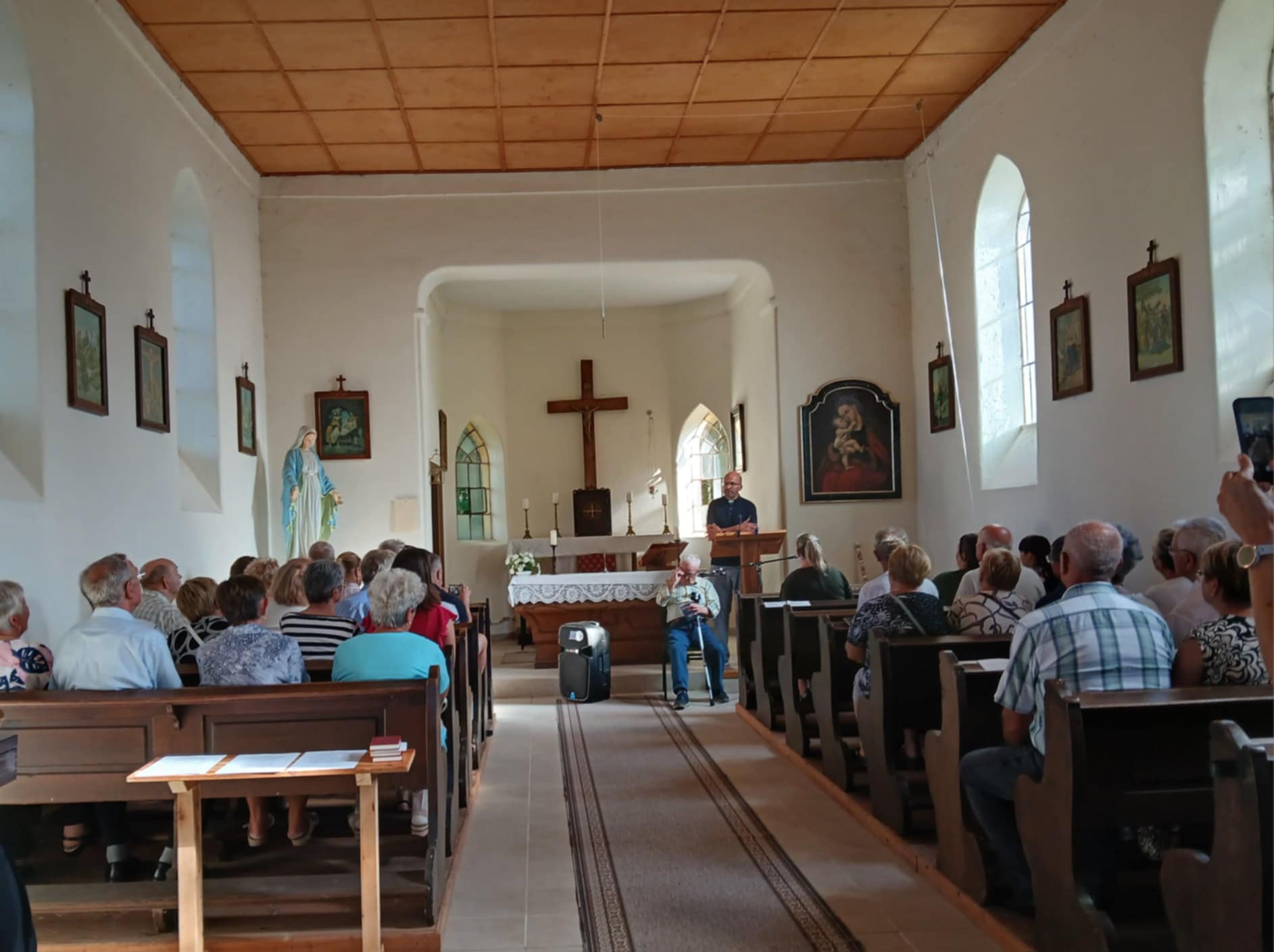 A kápolna tábláját Amrózy Tamás katolikus plébános avatta fel. Farkas Gábor a falu és a Grünfeldek történetéről mesélt.