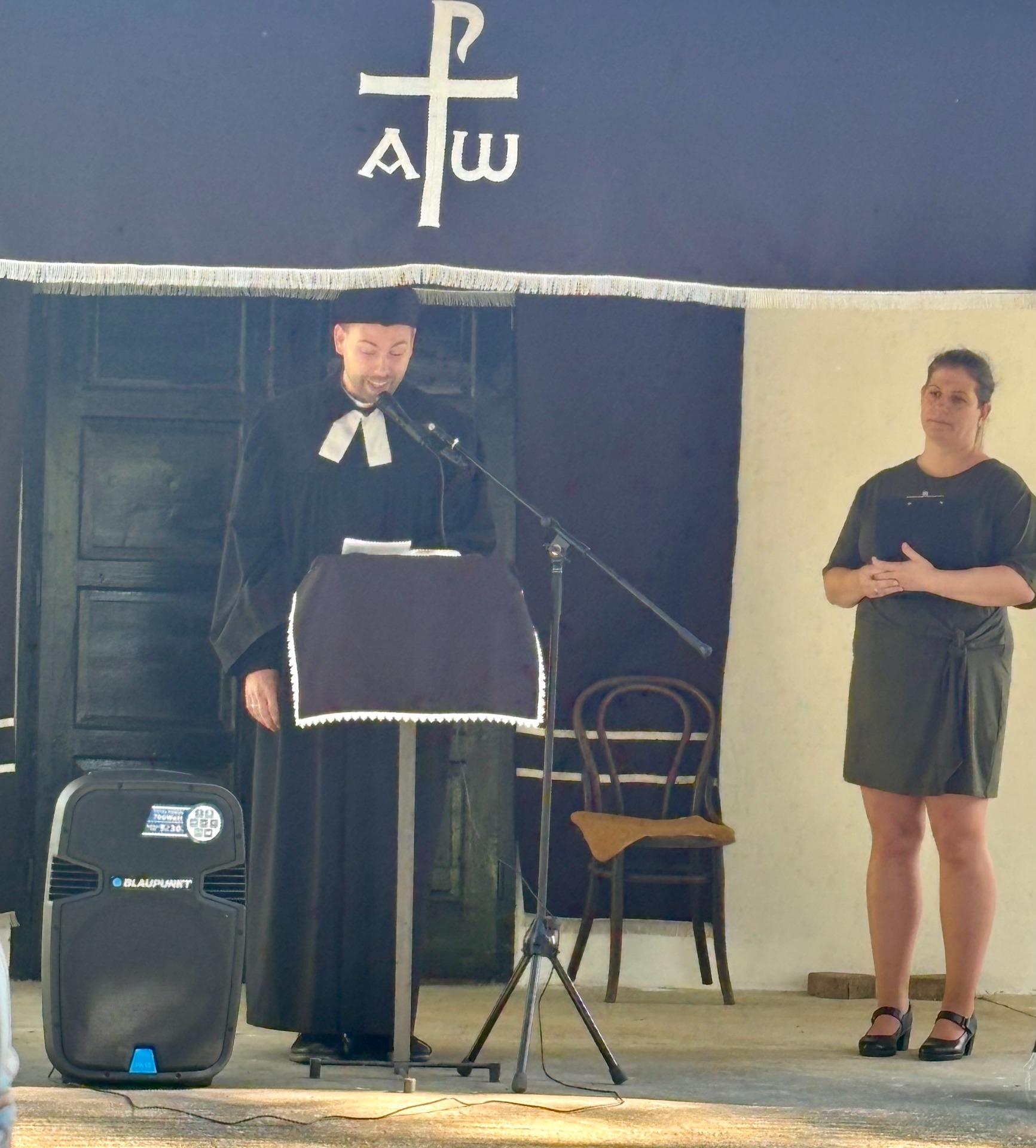 Végül megismertetett bennünket az alapítvánnyal és az épülettel vendéglátónk Szemerei Benjámin, a falu lelkésze, és a táborok vezetője.