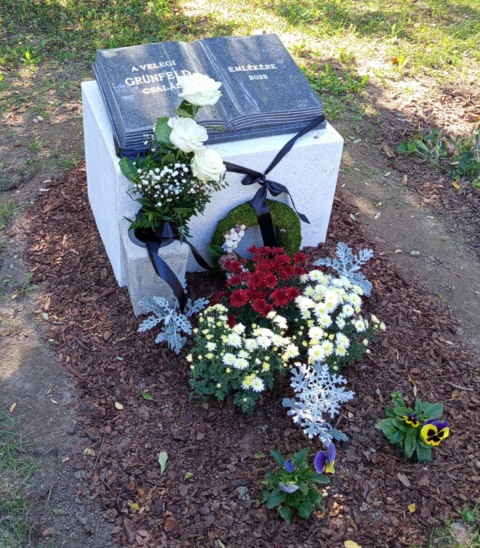 Eleinte véletlenül, saját őseimet és falutörténetet kutatva kerültek elém a cikkek a velegi Grünfeldekről. A Kultúrotthonnak egész gyermekkoromban a "haszonélvezője" voltam, de 2025-ben eljutottunk oda, hogy sokaknak fogalmuk sincs, miért hívják Grünfeld kastélynak. Február közepén egy facebook szavazáson 24 óra alatt 48-ból 47-en voksoltak arra, hogy illene valami tábla, vagy bármi, ami rájuk emlékeztet, így kicsit felhatalmazva éreztem magam, hogy lépéseket tegyek. Eleinte a kastélynál szerettem volna ezt megvalósítani, de arra nem volt lehetőség, viszont ez úton is köszönöm a Falugondnoknak Gellér Vilmosnak, és az Önkormányzatnak az erkölcsi támogatást. A temetőbeli emlékhely kicsit azt is szimbolizálja, hogy 80 év után mégis lett "sírhelyük" valamiképpen. A gránitból készült nyitott könyv pedig azt, hogy az életük és haláluk bár szinte nyitott könyv a számunkra, mégsem ismerjük minden oldalát.